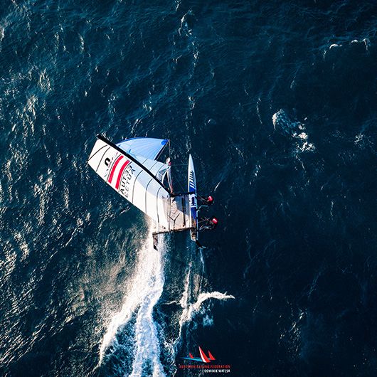 Laura Farese and Matthäus Zöchling have formed a successful sailing team in the Nacra catamaran class since 2017. Both are from Austria and discovered their passion for sailing at an early age. Their joint career began in the youth class Nacra 15, in which they competed at the Youth Olympic Games in 2018. Shortly afterward, they transitioned to the Olympic class Nacra 17. Since then, they have not only achieved strong results at international junior events but have also secured a podium finish at a World Cup.