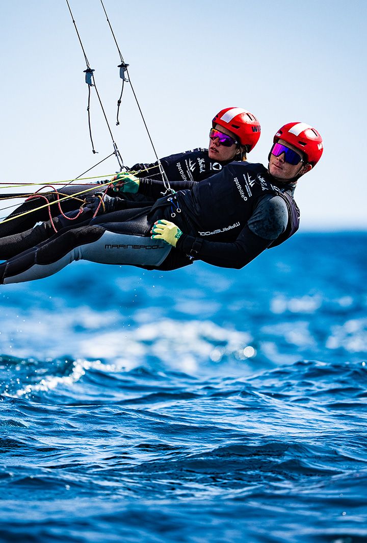 Laura brings athletic versatility to the team—before focusing on sailing, she also practiced judo and triathlon. However, she was ultimately drawn to the unique appeal of watersports. For her, sailing is special because it constantly exposes you to the forces of nature and teaches you to adapt to a wide variety of conditions. Matthäus discovered his enthusiasm for the sport through sailing holidays with his family. What started as a hobby has now become his profession.